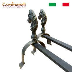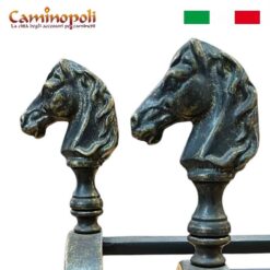 Coppia di alari in Ottone massiccio, rappresentanti la testa del cavallo che proponiamo nelle finiture lucido o antico ma per gli appassionati disponiamo anche del Set di Attrezzi per coordinare l’allestimento del vostro salone.