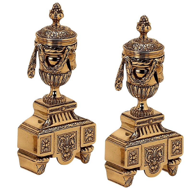 Alari per il Caminetto Francese. Coppia di alari in ottone in stile Francese. Proposti nelle due finiture, ottone Lucido come da foto ed Anticato.