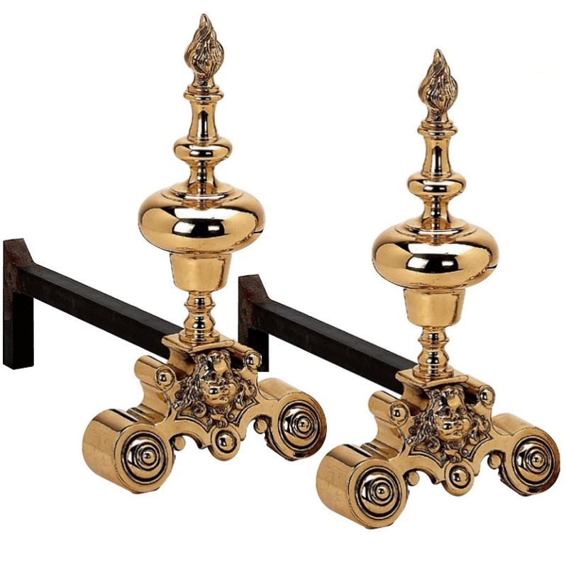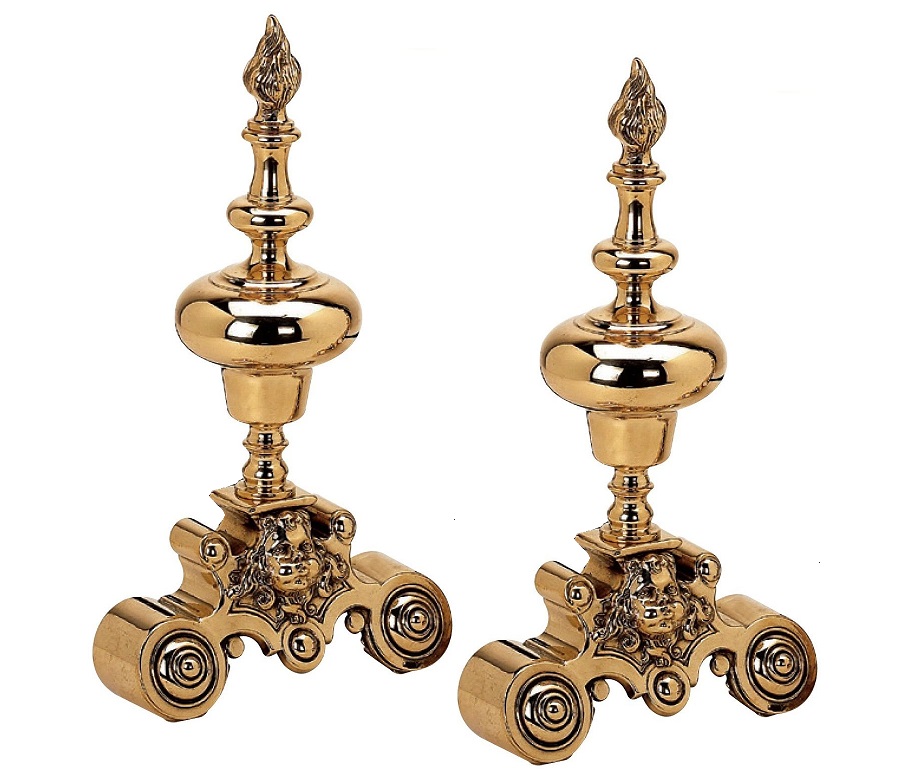 Coppia di Alari in massiccio Ottone, stile Luigi XVI.