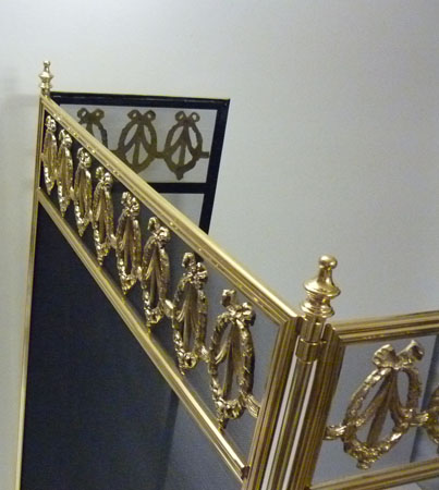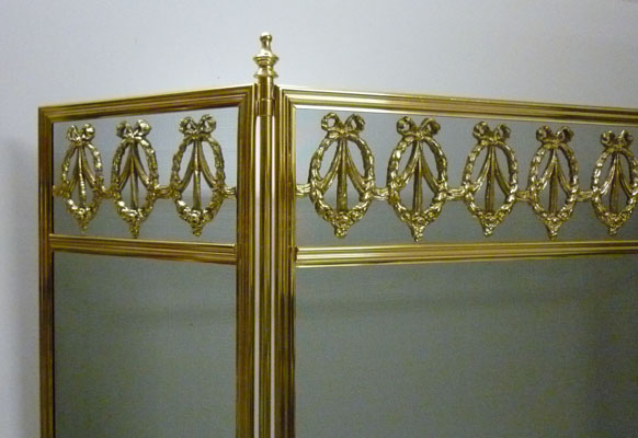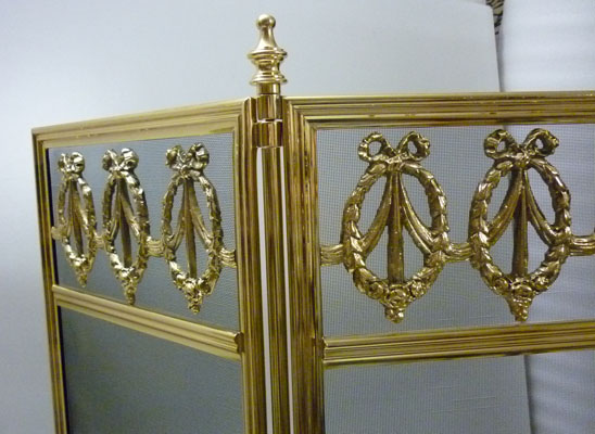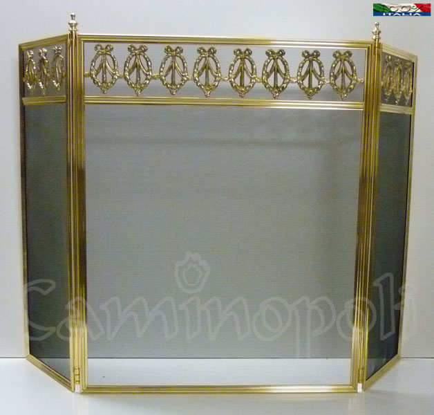 Elegantissimo parascintille realizzato interamente in massiccio ottone con finitura lucida, composto da un pannello frontale e due ante che servono a circoscrivere il fuoco per una migliore protezione dell’ambiente che ospita lo ospita, importante per dimensione, qualità e finitura, la struttura monta una speciale rete in tessuto metallico di colore nero che dona una totale trasparenza quando il fuoco è acceso.