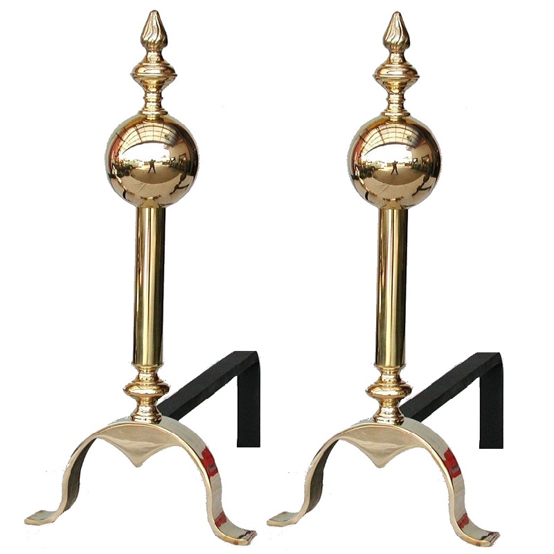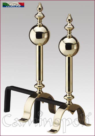 Coppia di Alari America. Alari per il Camino di grande misura e proposti nelle due finiture: Lucido Anticato