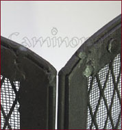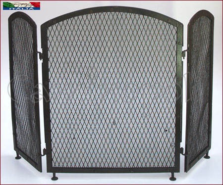 Parascintille 3 ante in ferro forgiato e battuto interamente a mano, composto da un pannello e due ante uguali, si raccoglie a fisarmonica nei spostamenti. Ognuna delle tre parti è composta da cornice, rete decorativa a maglia larga, rete protettiva a maglia stretta e contro cornice, il tutto chiodato a mano come si faceva più di cento anni fa.Il ferro è privo di qualsiasi processo industriale, è rustico ed usando questi attrezzi avrete il piacere di sentire tra le mani la fatica dell’artigiano che lo ha realizzato.NON DISPONIBILE