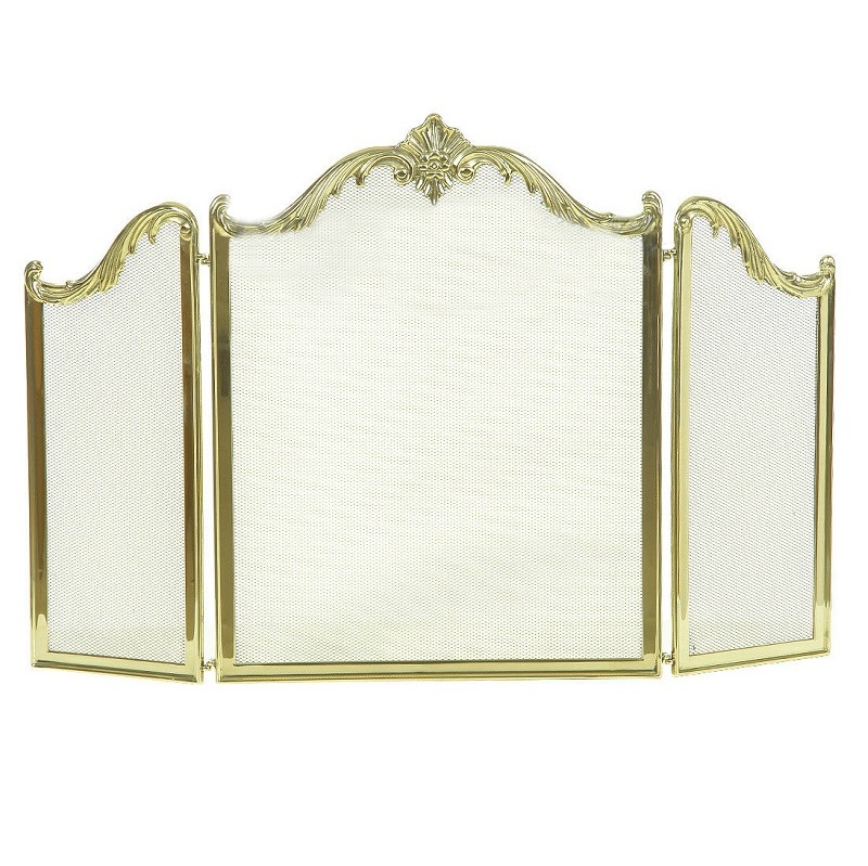 Parascintille per il camino a 3 ante realizzato in ottone dalla fusione di 6 stampi con oltre 200 anni di storia che proponiamo nella finitura lucida.