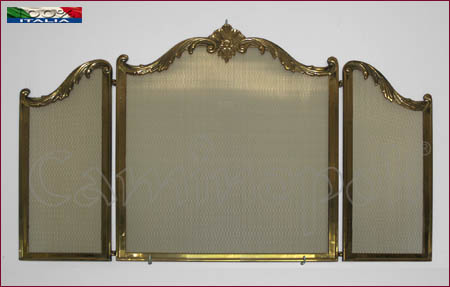 Parascintille in Ottone Lucido. Parascintille per il camino a 3 ante realizzato in ottone dalla fusione di 6 stampi con oltre 200 anni di storia che proponiamo nella finitura lucida. Disponibile anche nella variante ANTICATO