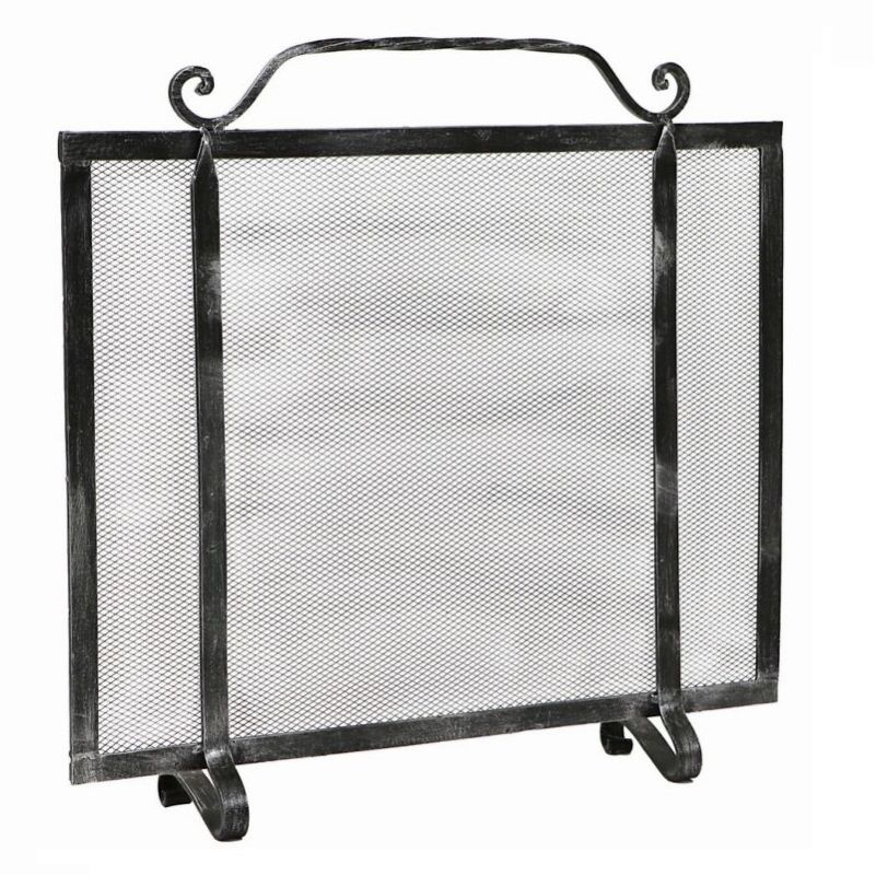 Schermo Parascintille in Ferro. Parascintille a pannello per il Camino, pratico maniglione nella parte superiore che agevola la presa. Realizzato in ferro battuto e semplice nella forma per favorirne l’inserimento in qualsiasi contesto senza esagerare se il camino è molto rustico. Colore nero con pennellature in argento.