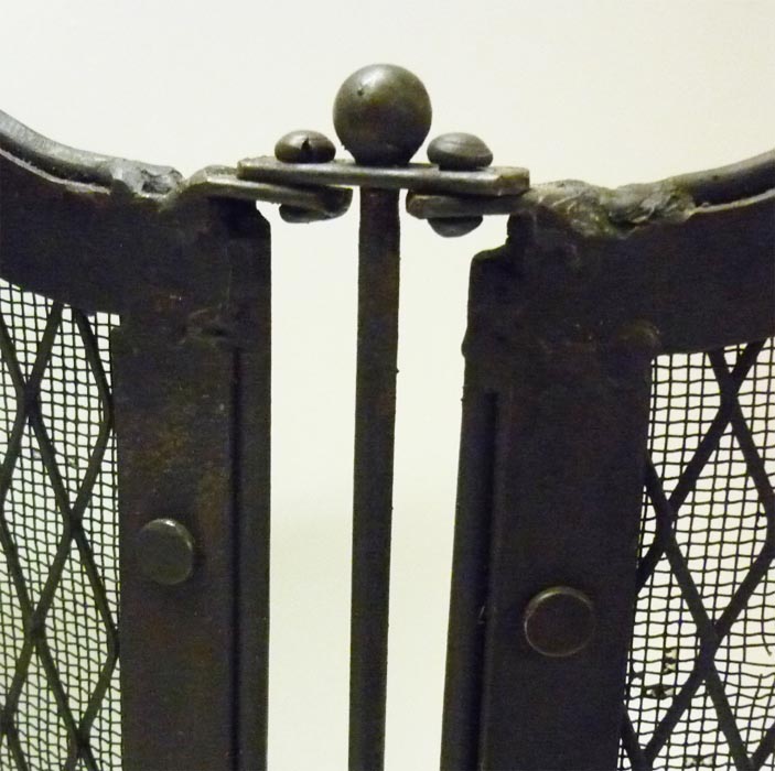 Parascintille in ferro e composto da tre ante, realizzanto da sapienti mani artigiane Salentine, tagliato, forgiato e chiodato interamente a mano e privo di qualsiasi passaggio industriale che riguardi i nostri giorni.