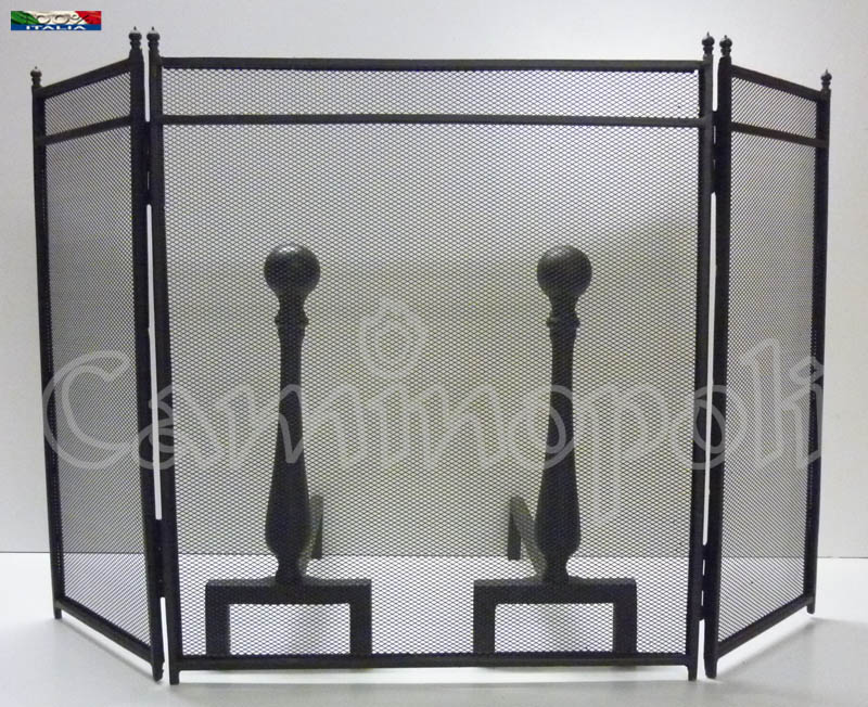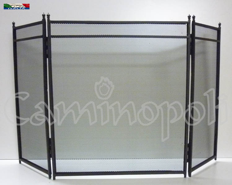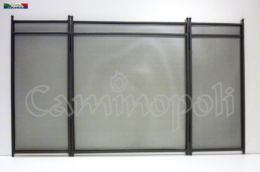 Parascintille a 3 ante, realizzato artigianalmente in ferro, dal disegno semplice ed essenziale.