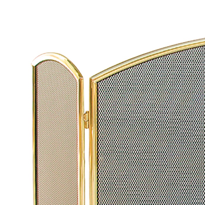 Parascintille in Ottone con finitura Lucida, composto da tre ante, ideale anche su camini angolari.