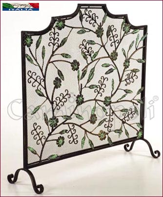 Parascintille monopezzo in ferro, piegato, forgiato e decorato interamente a mano.
