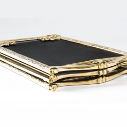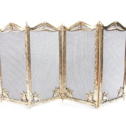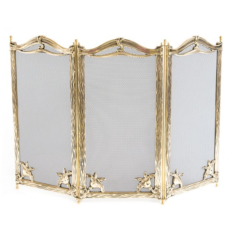 Parascintille da camino interamente in ottone in stile barocco, disponibile in 2 varianti 3 o 4 ante uguali, larghe ognuna 25 cm e realizzate in due stampi, cornice, rete e contro-cornice.