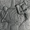 Piastra in ghisa da camino raffigurante un momento di caccia, il Cacciatore solitario.