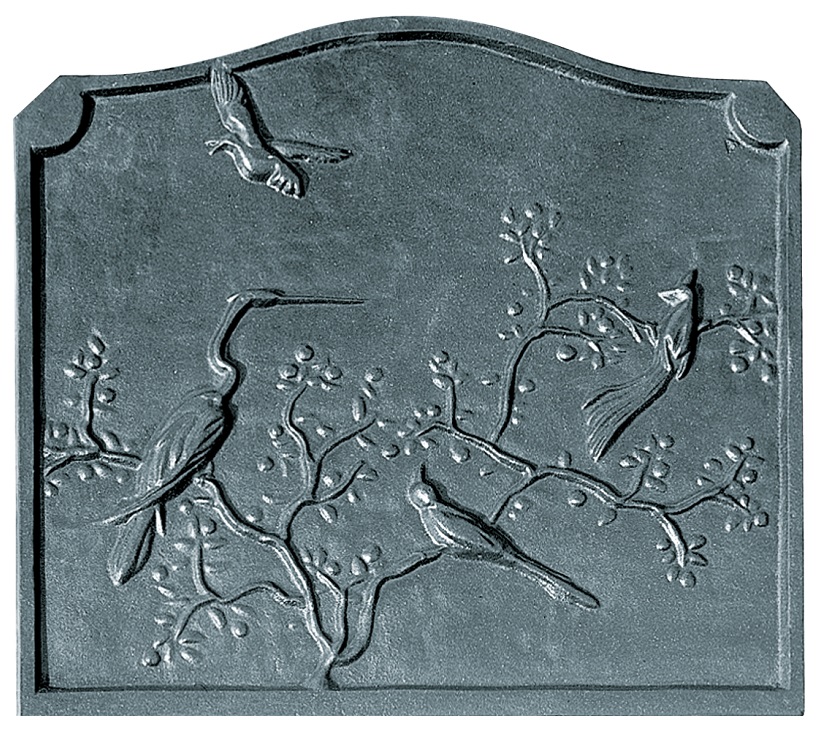 Piastra in Ghisa per il camino con soggetto Uccelli, protegge la parete, irradia calore ottimizzando i risultati e migliora l’estetica anche nel periodo di non fuoco.