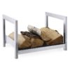 Portalegna Moderno in Acciaio. Indispensabile complemento per ambientazioni dallo stile moderno per avere la scorta della legna vicino al Camino ma nei mesi estivi diventa un Gentile “portariviste”.