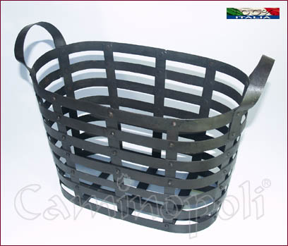 Cesta portalegna con manici, realizzato in ferro forgiato, piegato e chiodato da sapienti mani Salentine.