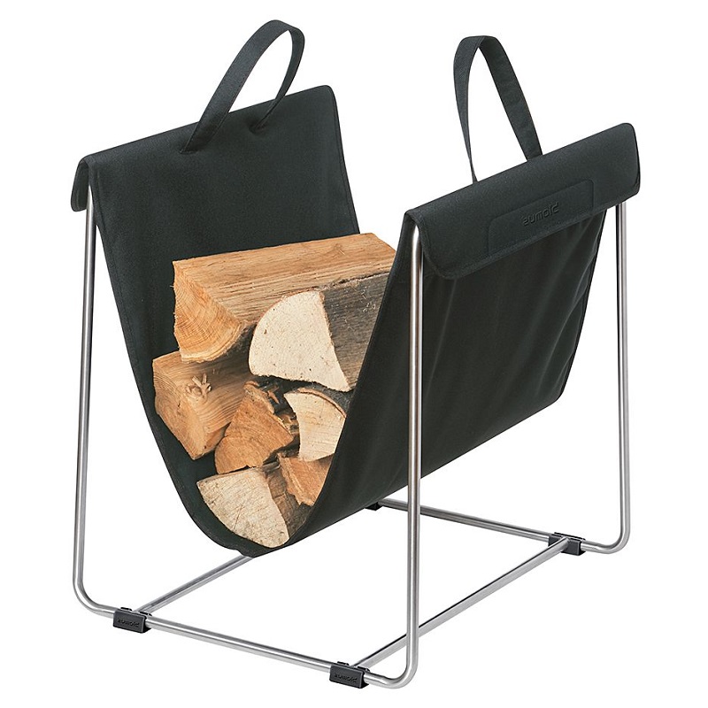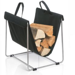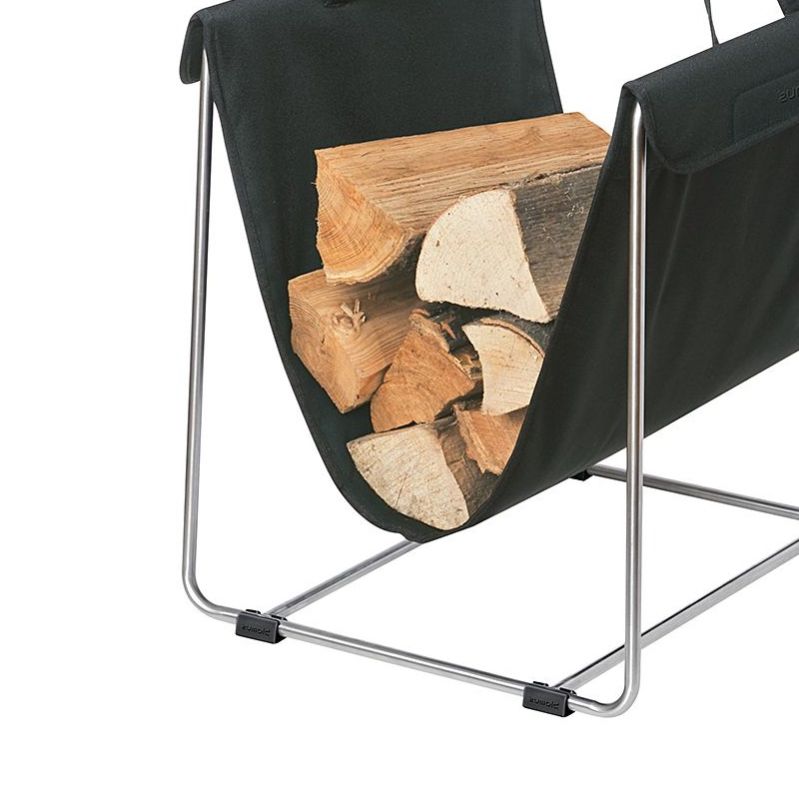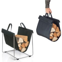 Elegantissimo ed essenziale Portalegna in acciaio con comoda sacca che facilita il trasporto senza trasferire.