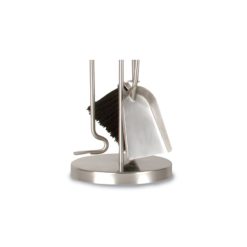 Set di attrezzi per il Camino in Acciaio satinato con le impugnature in legno.