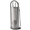 Set di attrezzi per il camino con maschera in acciaio lucido, composto 3+1 con Scopino, Paletta ed Attizzatoio, impugnature in acciaio massiccio.