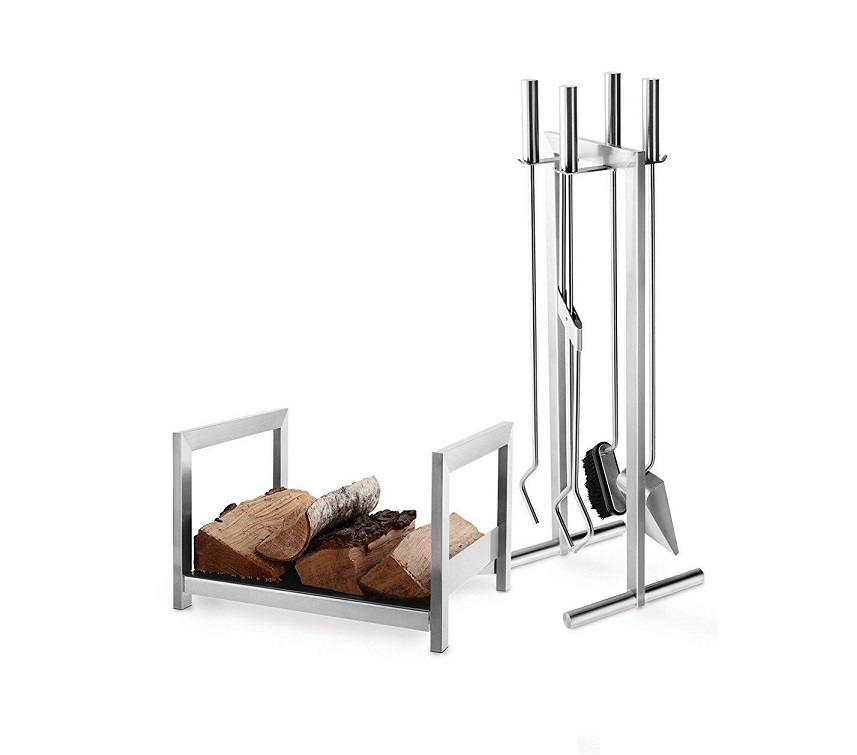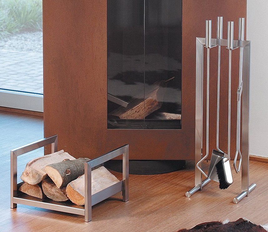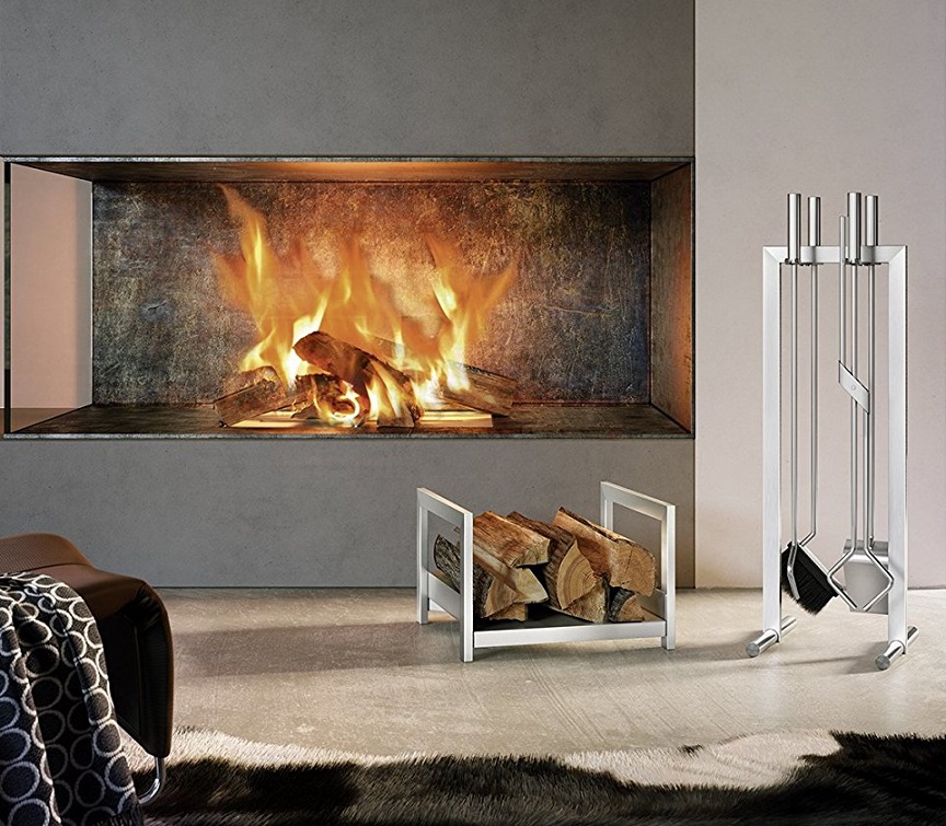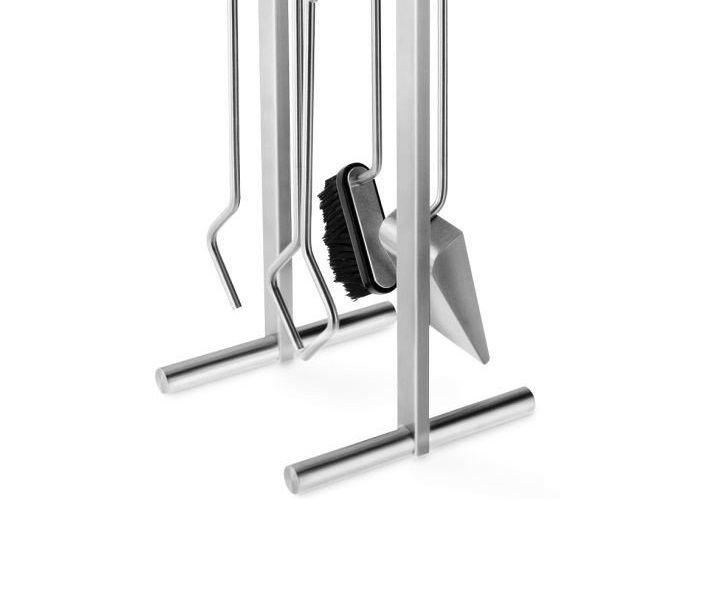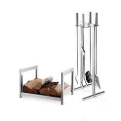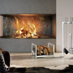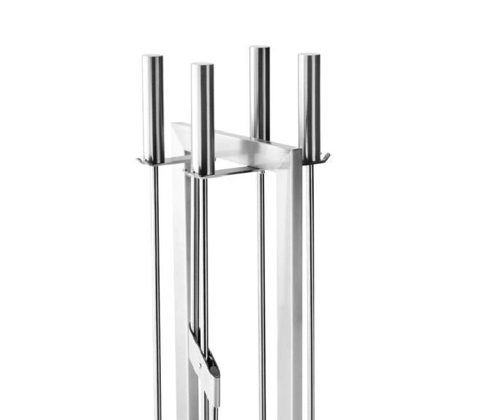 Set di attrezzi in Acciaio spazzolato, dal design moderno e capace di completare l’estetica e la funzionalità del Camino contemporaneo.
