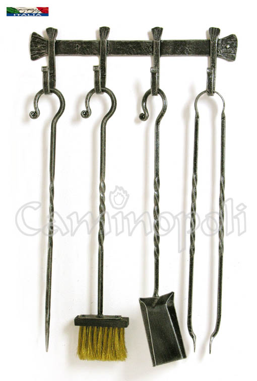 Set di accessori per il focolare, per chi non ha spazio e vuole averli appesi come mestoli.