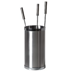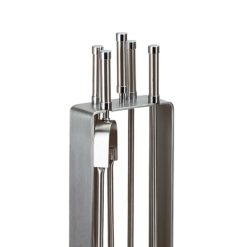 Set di attrezzi 4+1 realizzato in Acciaio spazzolato con dettagli in lucido, composto da Attizzatoio, Paletta e Scopino in fibra di cocco che lo rende resistente al calore.
