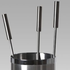 Il contenitore cilindrico in Acciaio dona un’ottima stabilità, capace di contenere le ceneri che potrebbero rimanere nello scopino, inoltre maschera perfettamente le estremità che nel tempo potrebbero annerirsi.