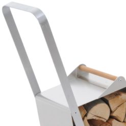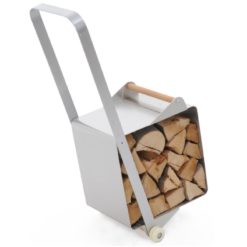 Esclusivo portalegna con ruote, realizzato in Alluminio e legno, corredato da maniglione, pronto per i trasferimenti della legna senza fatica grazie all’ausilio delle ruote.