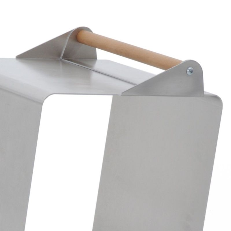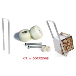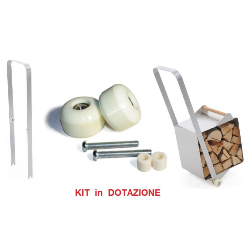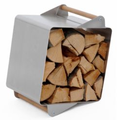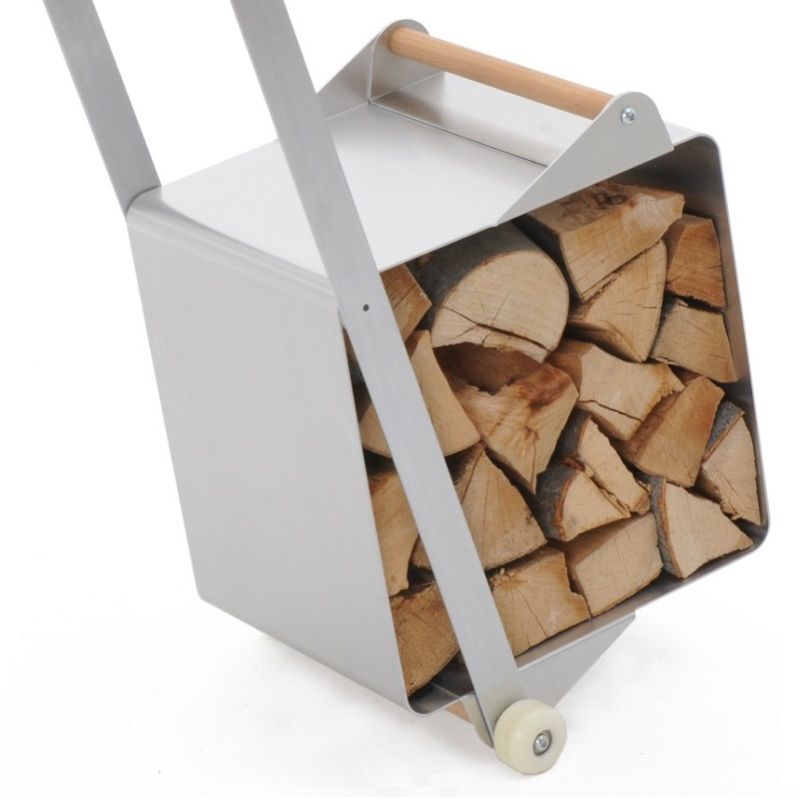 Portalegna in Acciaio BUBO con Kit Ruote. Oggetto di design realizzato in Acciaio Inox. Complemento d’arredo per contenere la Legna in modo esclusivo. Comprende Maniglione e Ruote ma deciderete voi come montarlo.